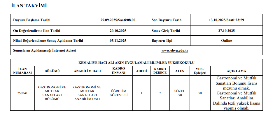 Verecek) kadroları için ilgili birimlerden bilgi edinilebilir.