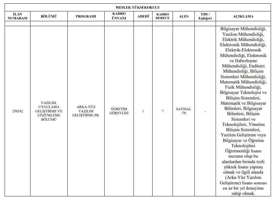 yabancı dil şartı aranmaz. (14/2)