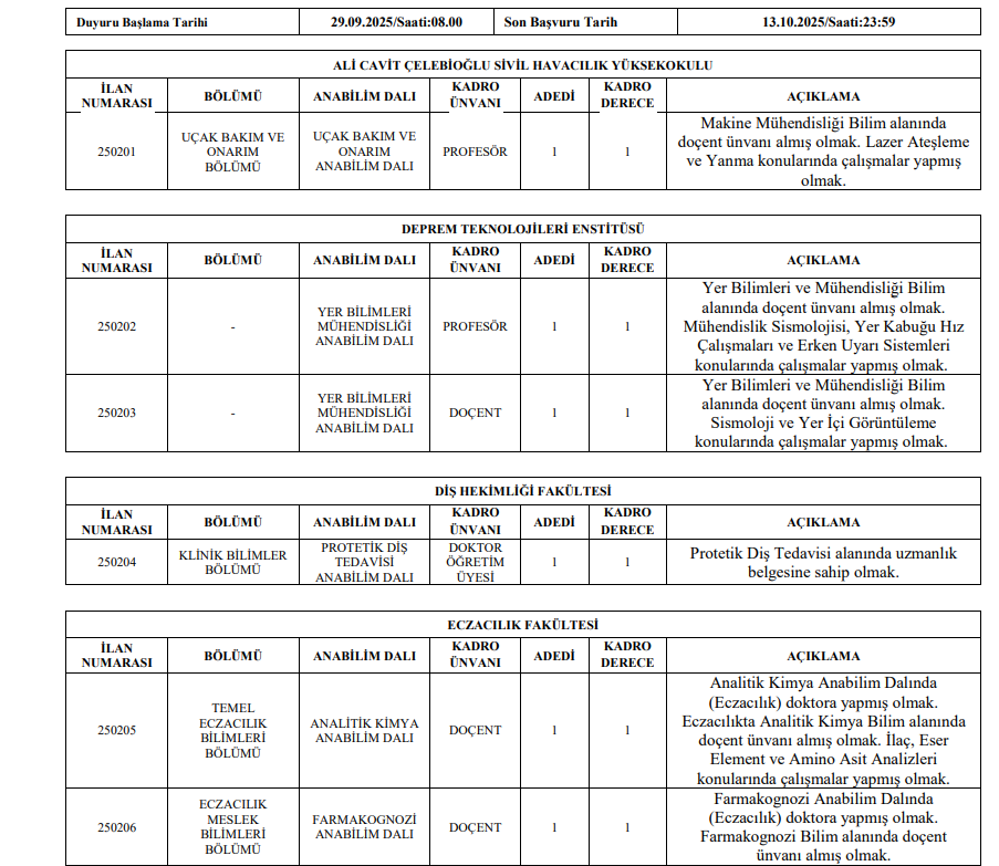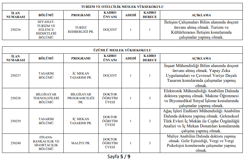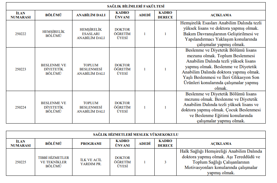 5-Doçent kadrosuna ; Profesörler, Doktor Öğretim Üyesi Kadrosuna ; Profesör ve Doçentler Müracaat edemezler.