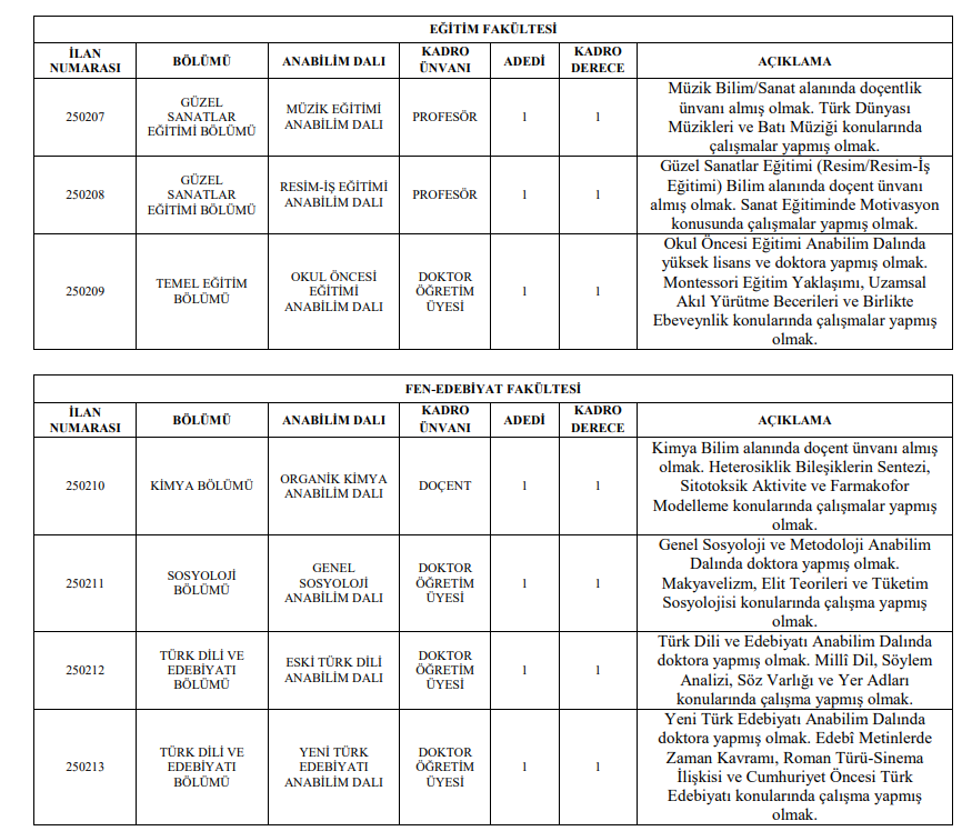 Öğretim Üyesi Alımı İlanı