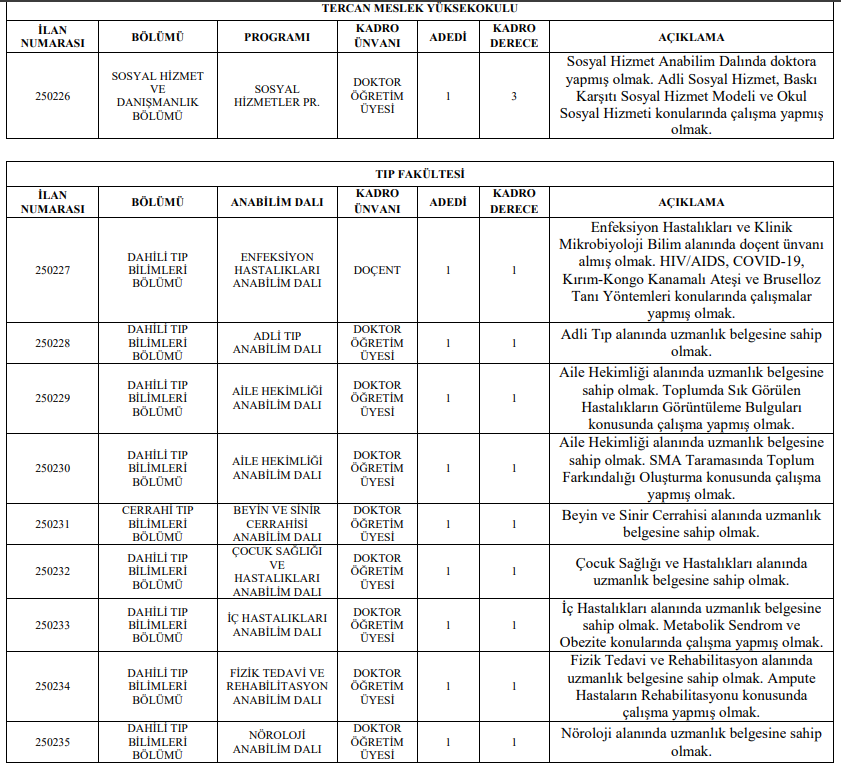 Üniversitemize vermiş olduğu atama izni kontenjanı dahilinde yapılacak olup, atama izni kontenjanını aşan hiçbir atama gerçekleştirilmeyecektir.
